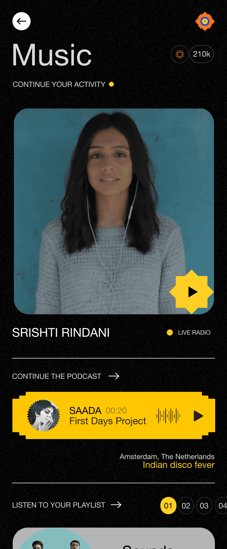 The South Asian diaspora isn't just large it's culturally generative. In many Western countries, diaspora communities are actively creating fusion cultures, blending South Asian heritage with their adopted home's influences. What's missing isn't interest it's infrastructure. A platform that treats South Asian culture with the same depth and intentionality that the community itself brings to it. After collecting and creating a moodboard of south asian advertisements, graphic design work, album art, movie posters, campaign images it was clear the communication language is vibrant, energetic and eye catching. The visual language needed to feel warm, contemporary, and culturally confident — neither exoticising South Asian aesthetics nor stripping them away in favour of a generic tech look. Typography, colour, and iconography were chosen to feel familiar to the community while remaining accessible to those discovering South Asian culture for the first time. The platform architecture was designed around three core needs: Connect (find people like you), Discover (events, artists, collaborators), and Share (stories, traditions, experiences) — reflecting how South Asian diaspora communities naturally build bonds.