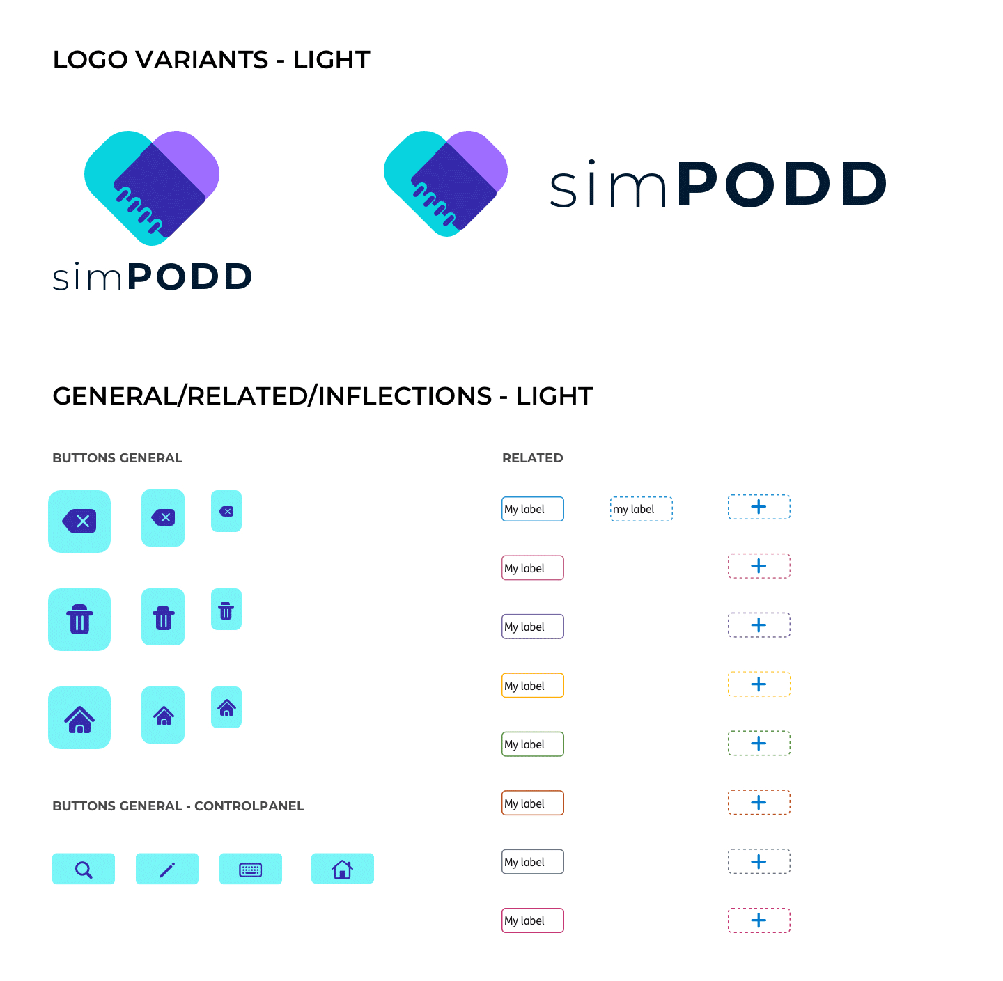 The simPODD logo was designed to communicate the app's core proposition in a single mark: the union of digital and print. Two worlds that had always existed separately, now one. Color selection was driven by accessibility compliance, every choice was validated against AA contrast ratio standards to ensure the interface worked for users with visual impairments, not just those without.