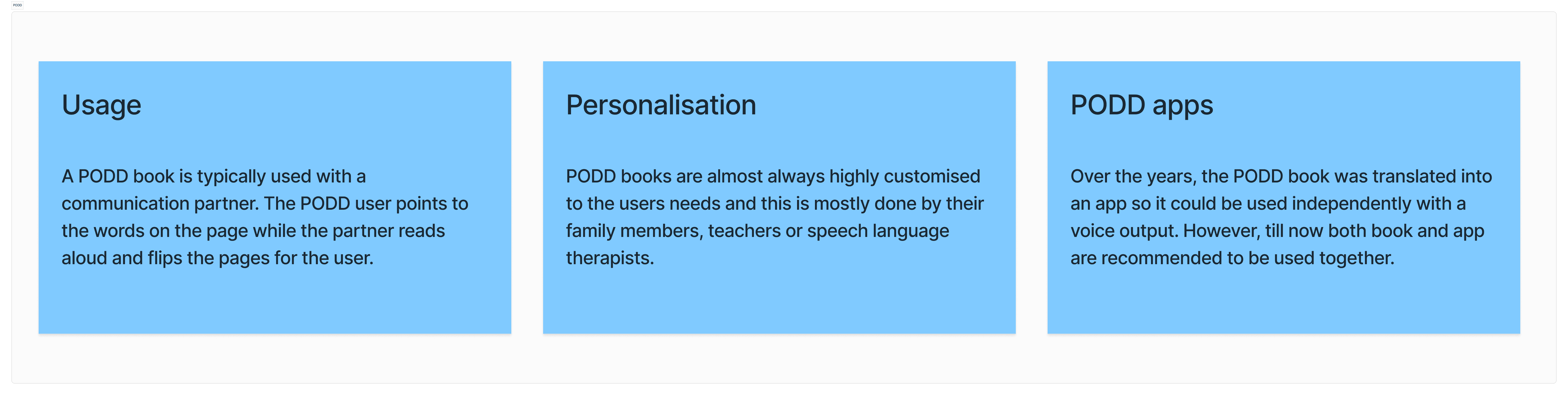 PODD is one of the most widely used vocabulary systems for people with communication disabilities but for thousands of families, using it meant carrying a heavy spiral-bound book everywhere. A book a child with severe physical impairments could barely lift, let alone navigate independently. The question wasn't whether PODD worked. It did. The question was whether it could live on a device and whether that device could also replace the printed book entirely.