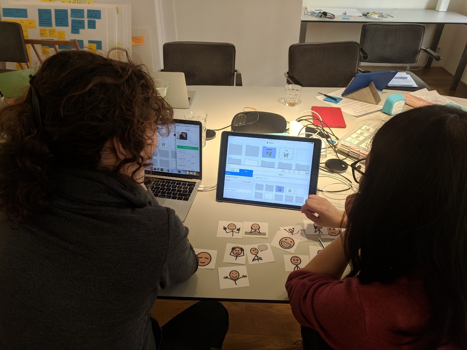 Testing was iterative and deeply human. Sessions ran both remotely with users abroad and in person at the Amsterdam office. One moment stood out: participants were asked to select symbol cut-outs to express how they felt after using the prototype —> a non-verbal feedback method that mirrored the very communication principles the app was built on. It was a reminder that the users of this product don't always have the option of telling you what they think in words. You have to design the research around that reality too.